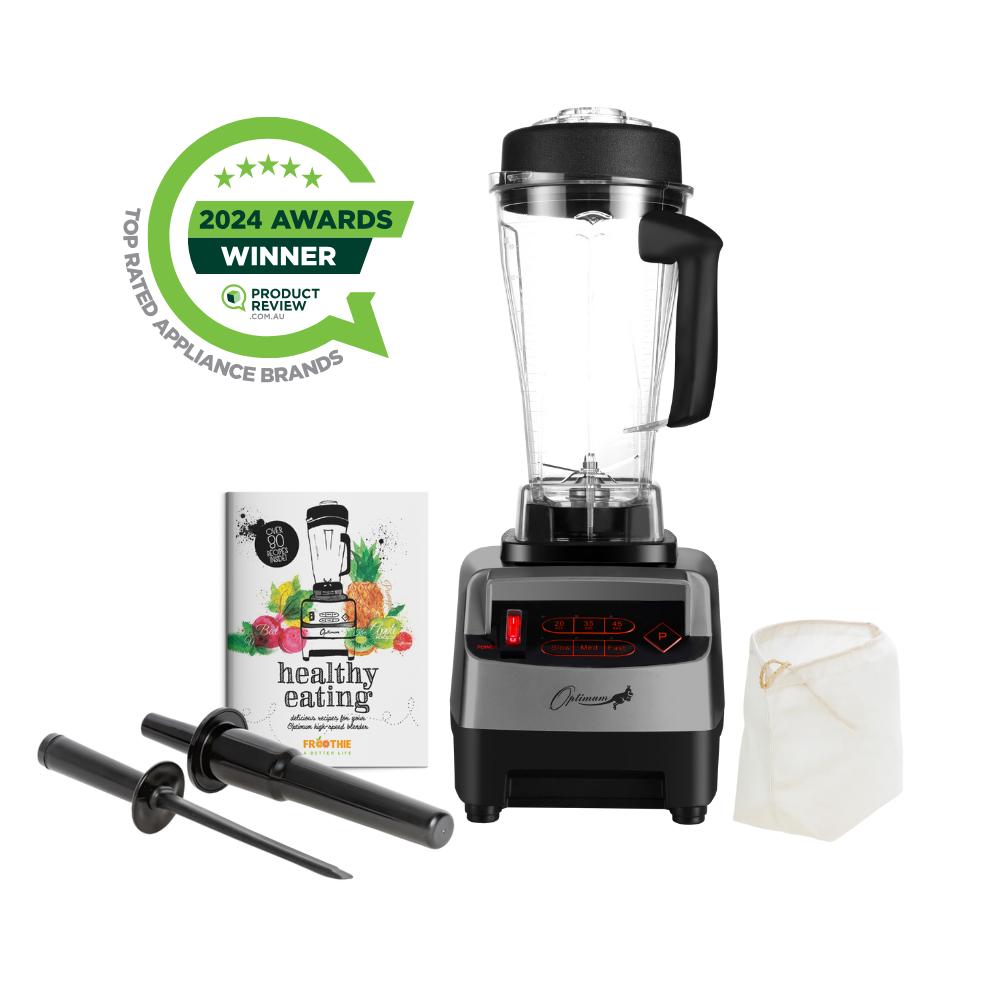 While ordinary blenders have a blower motor that runs constantly at maximum power, which can cause the motor to burn out quickly, the Optimum uses a proprietary carbon brush motor that is optimized to use only the power it needs - giving you a motor lifespan of decades instead of months. This component is one reason why Froothie offers its customers the option of a 5 year motor warranty, 1 year parts warranty (domestic), backed by Athena Solutions Pty Ltd and the manufacturer Optimum Appliances Australia.